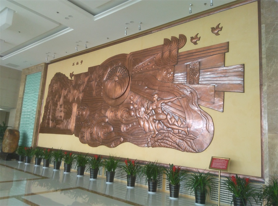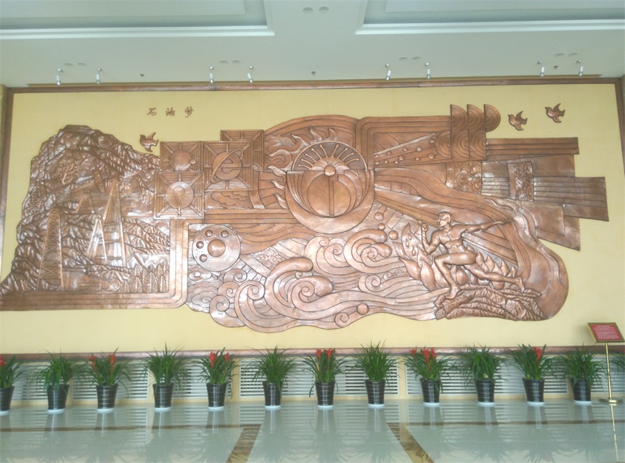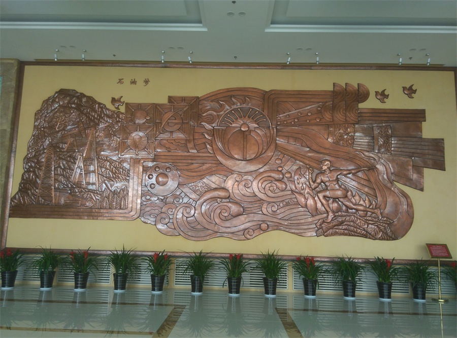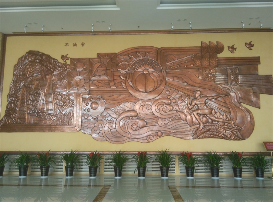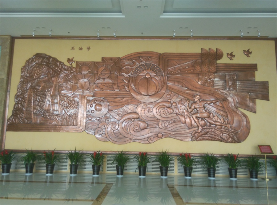 大型鍛銅浮雕——石油夢,于2015年8月正式落成中國石油大學華東校區(qū)(青島市黃島)。該浮雕,由紫銅板手工鍛造成型。寓意了石油人奮發(fā)進取的創(chuàng)業(yè)精神及祖國石油業(yè)的蓬勃發(fā)展。