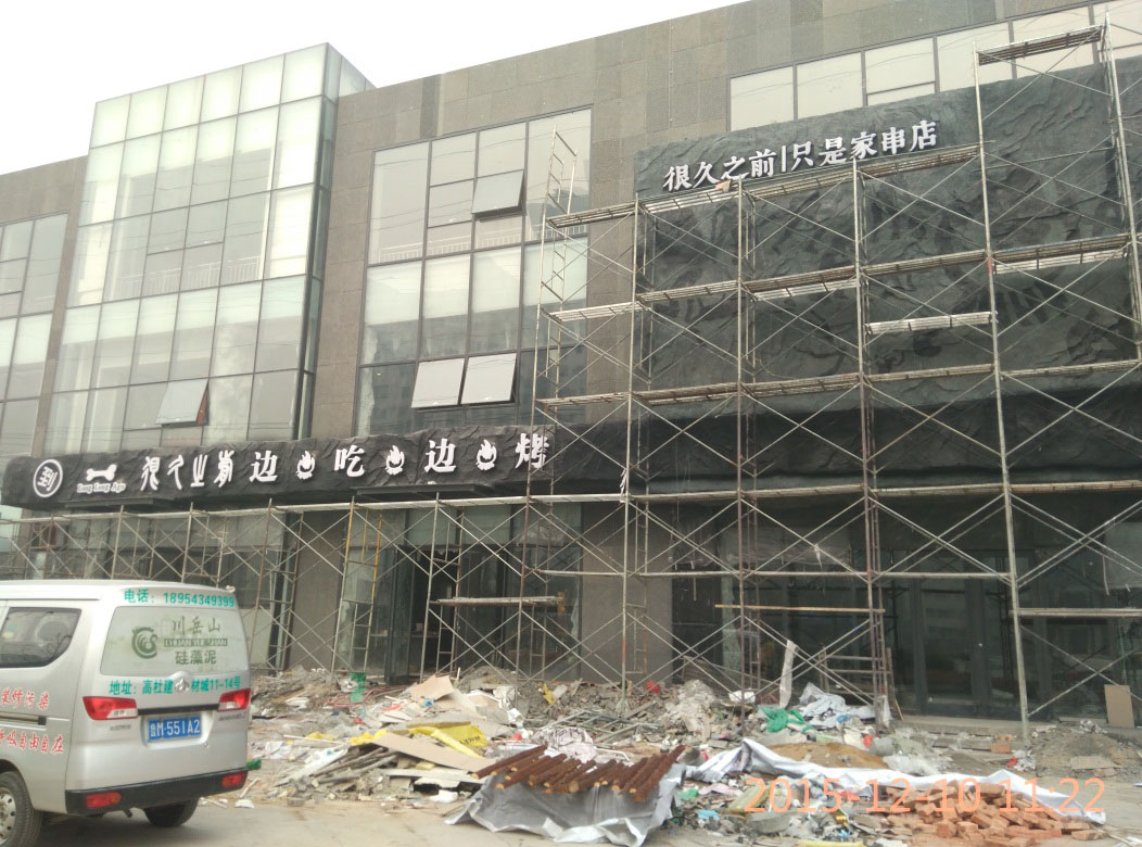 本項(xiàng)目從2015年10月28日開(kāi)始施工,截止2015年12月6日順利竣工。地址位于濱州市黃河六路渤海十八路西200米路北。室內(nèi)假山裝飾部分,分為巖石假山、仿鐘乳石假山、仿溶洞效果三種風(fēng)格?,F(xiàn)為濱州市唯一一家大型原生態(tài)風(fēng)格自助室內(nèi)燒烤城。
