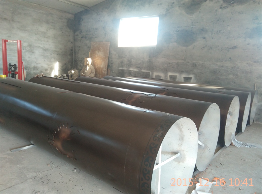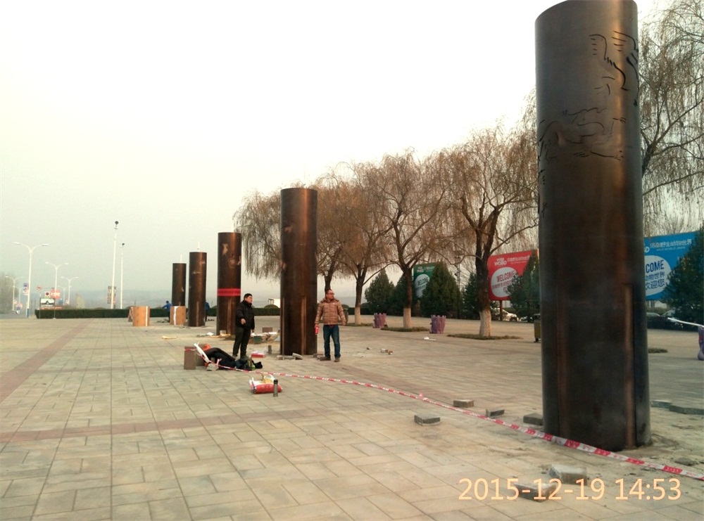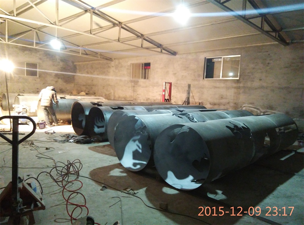 材質(zhì):內(nèi)置LED等源,燈箱采用亞克力,外層為4mm厚鋼板卷制,鏤空圖案激光切割。