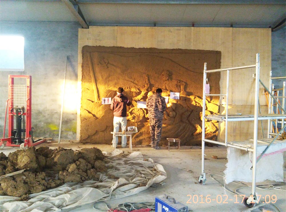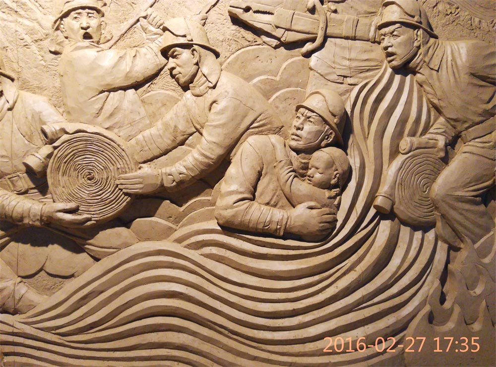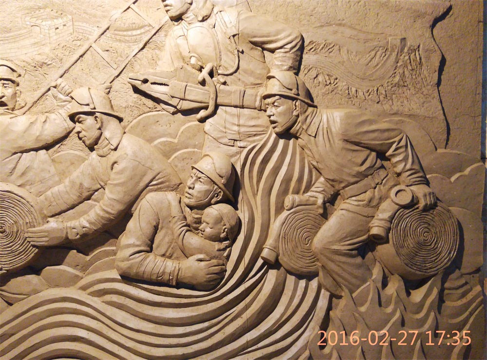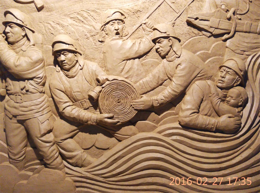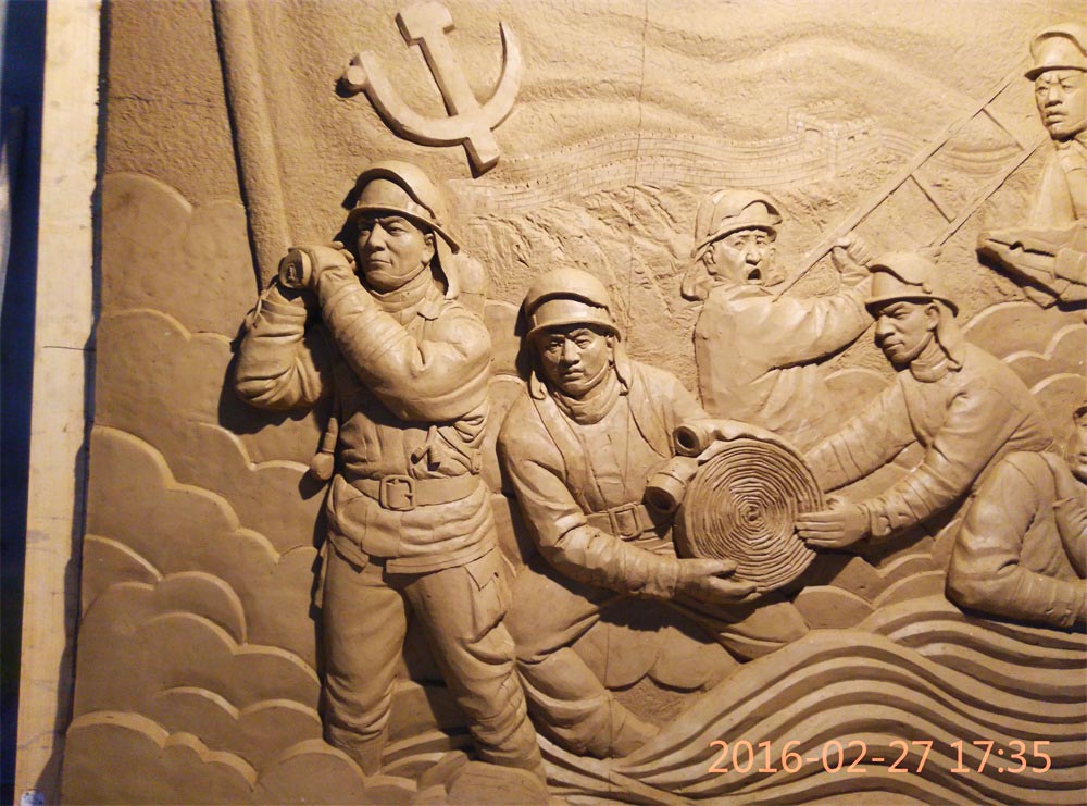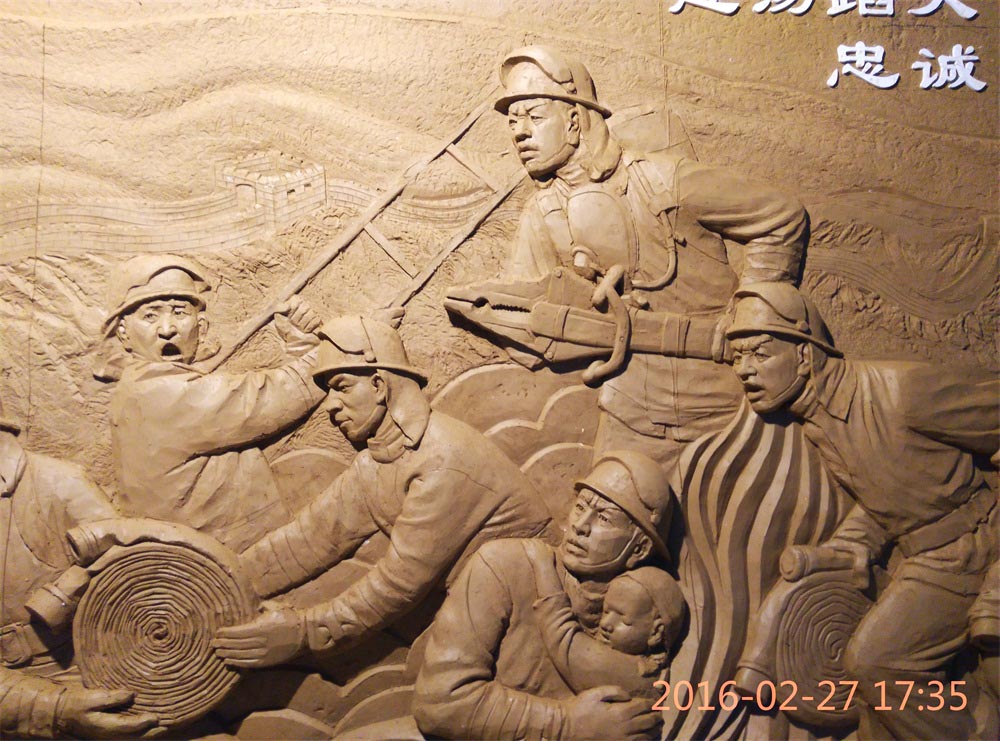 原創(chuàng)消防題材玻璃鋼浮雕,效果為仿銅色。
