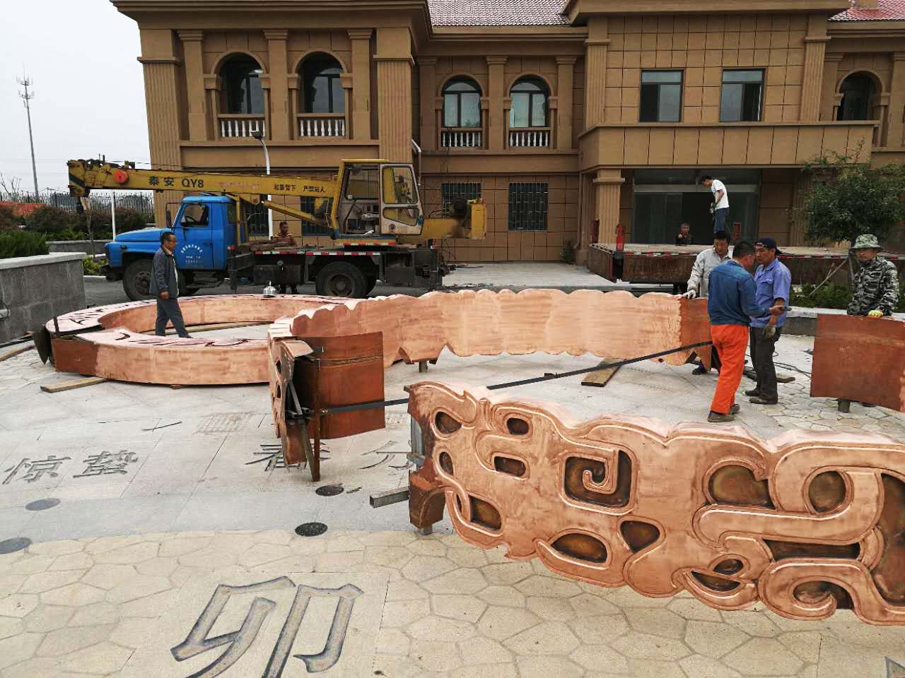 雕塑材質(zhì):紫銅板,手工鍛造。