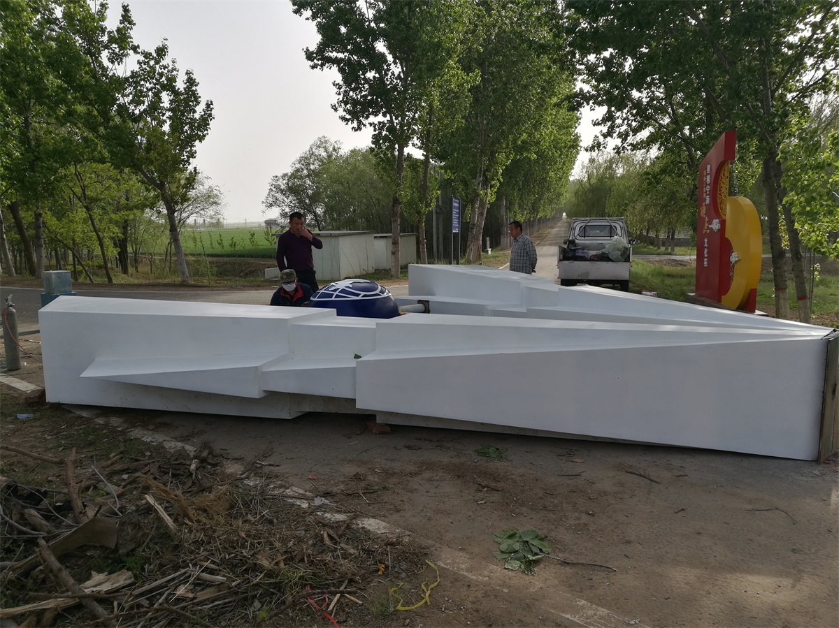 雕塑整體呈扇形構(gòu)造,代表黃河三角洲扇形外貌;兩側(cè)形似利劍,寓意治黃工作者敢于“亮劍”的拼搏精神; 中間球形,寓頂點(diǎn)之意;其上印制有黃河水利委員會(huì)標(biāo)志,圍繞十只和平鴿。寓意以治黃事業(yè)為中心、人民幸福、和平安寧、生態(tài)保護(hù)、空間均衡;主體色彩以紅、黃、藍(lán)搭配。紅色代表黨建引領(lǐng),黃、藍(lán)象征海河交匯。寓意治黃事業(yè)在中國共產(chǎn)領(lǐng)導(dǎo)下開創(chuàng)新篇章。