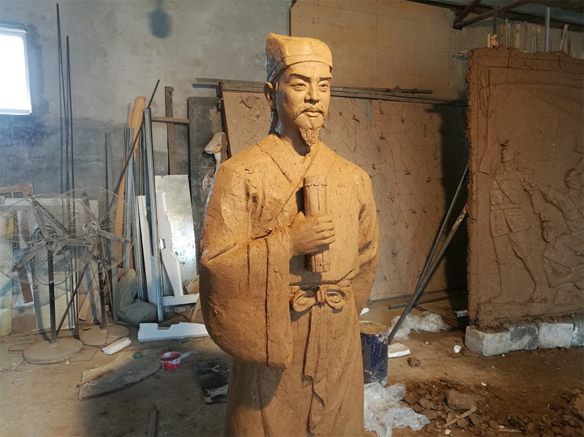 材質(zhì)工藝:規(guī)格為等大人物,高2米,玻璃鋼材質(zhì),仿古銅色。