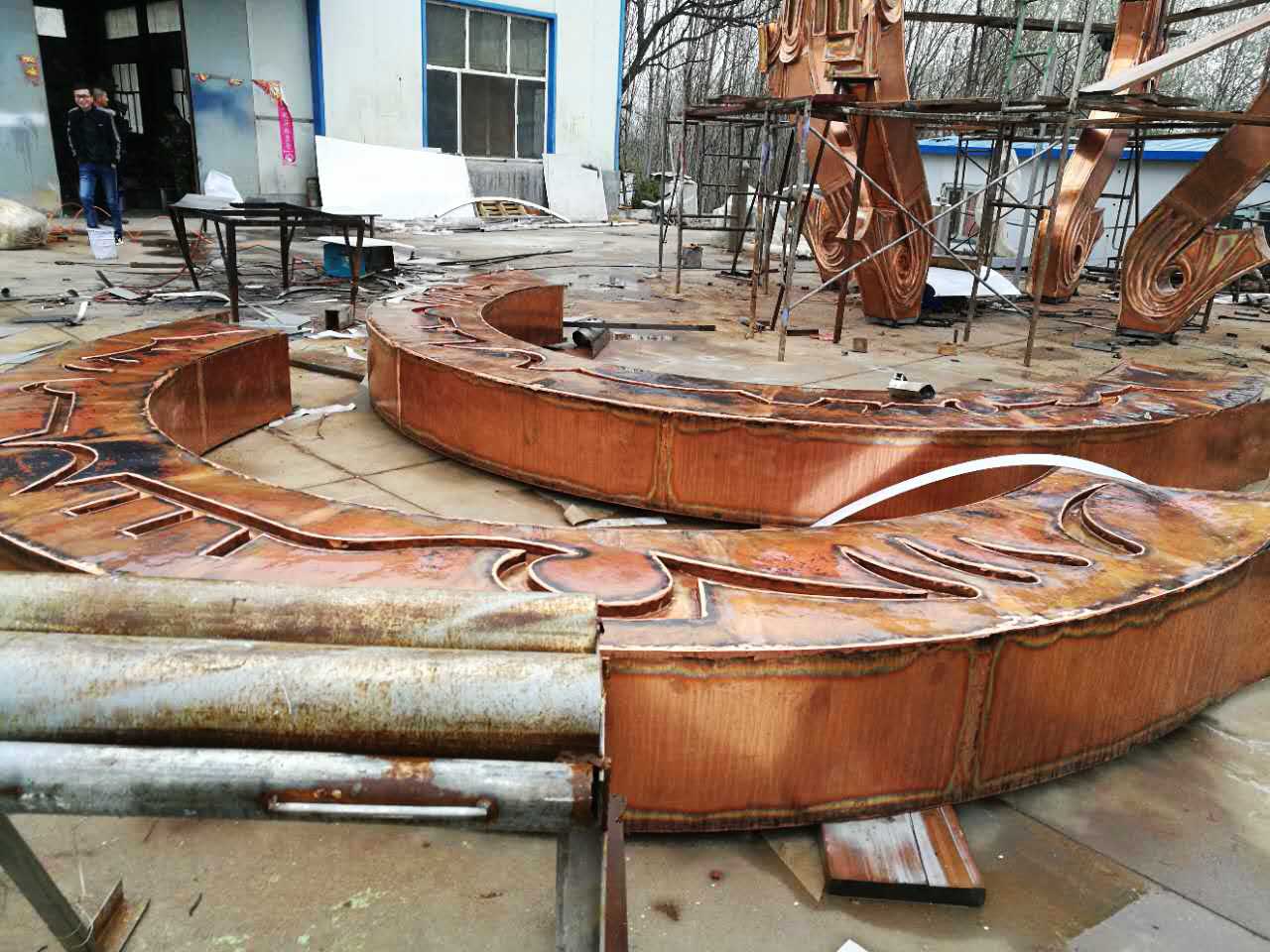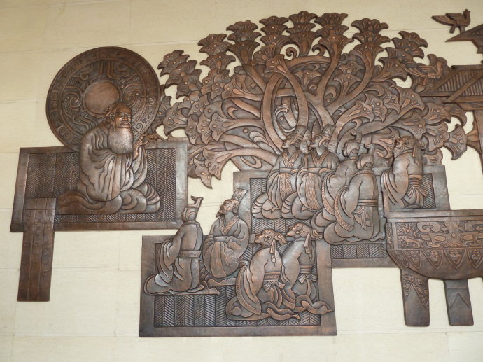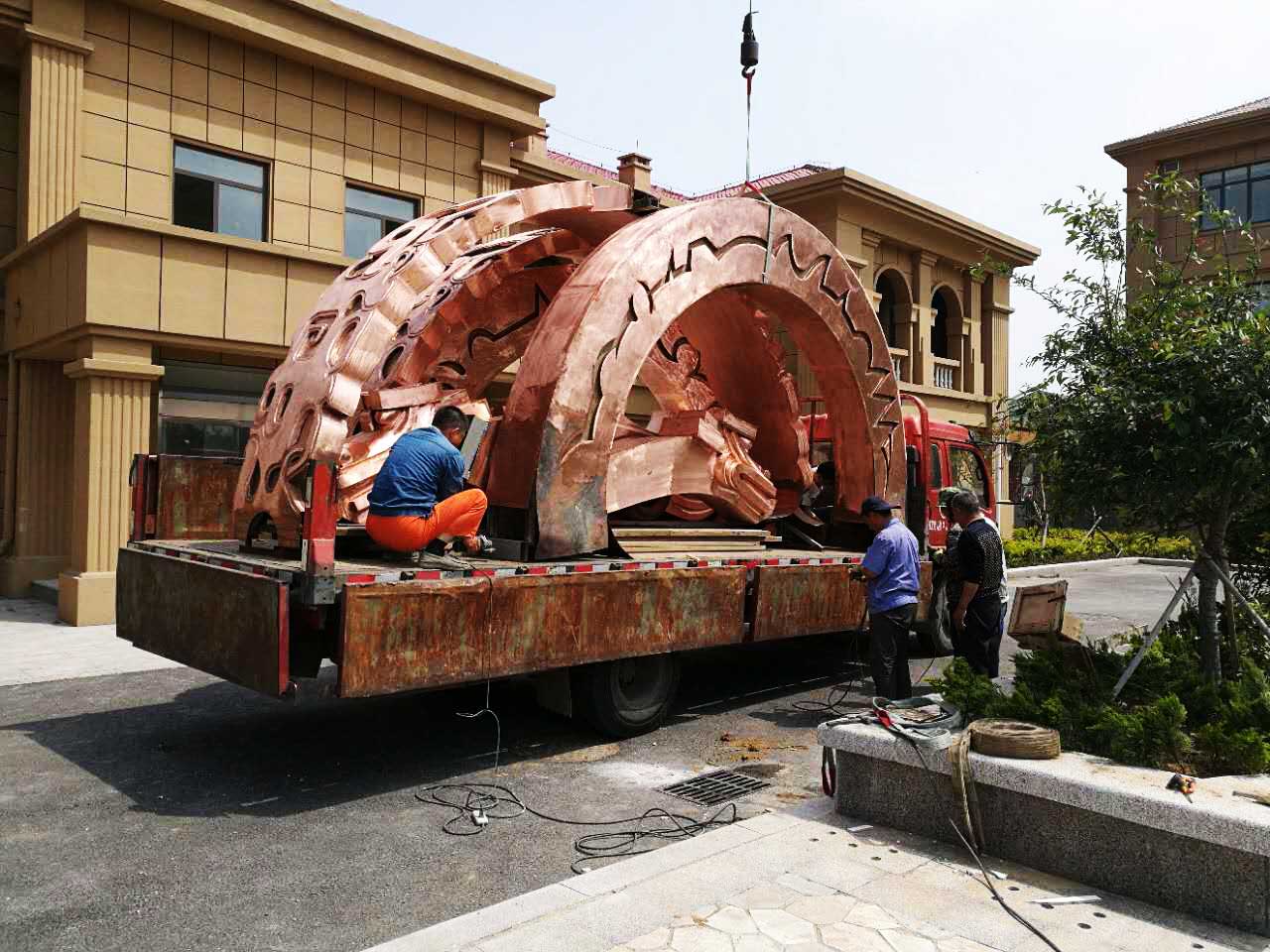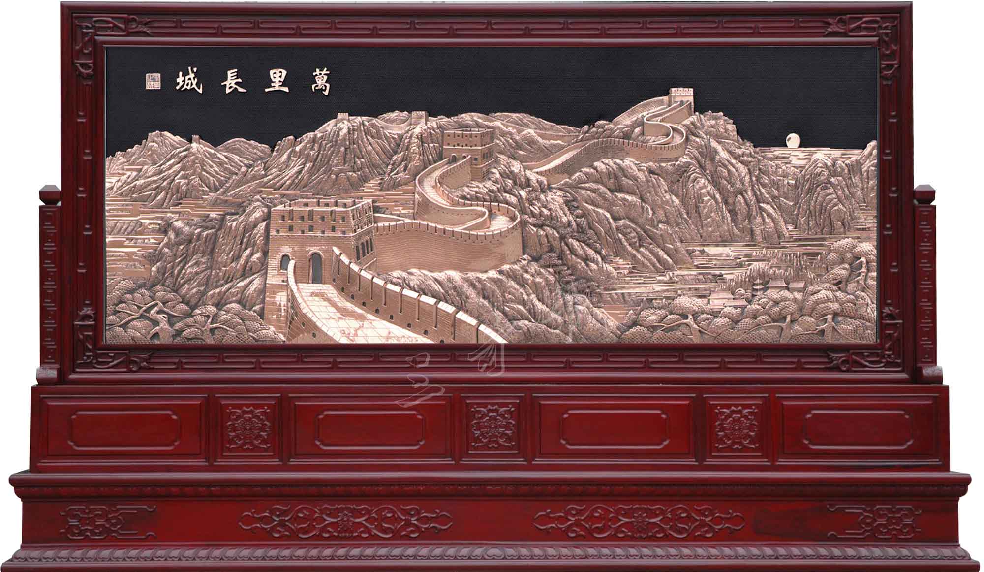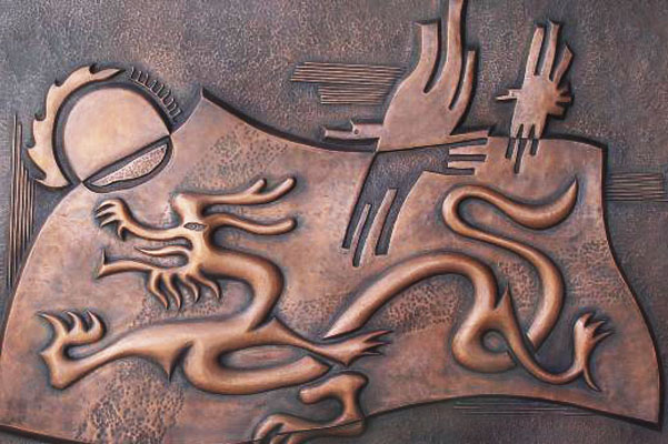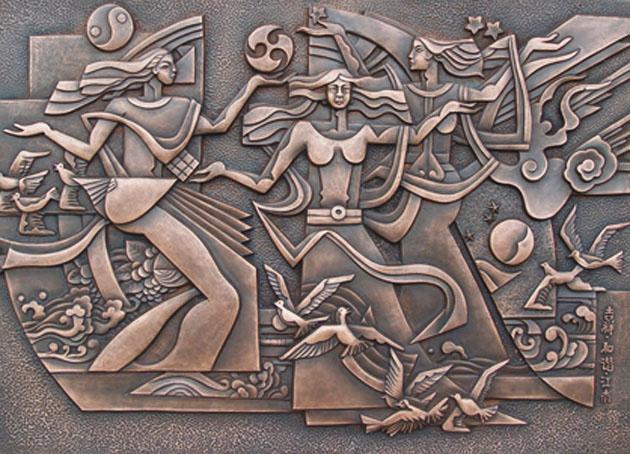鍛銅雕塑,鍛銅浮雕展示。鍛銅浮雕(又叫鏨銅或敲銅),是利用銅材料的延展性興起來得鏨刻工藝,是我國傳統(tǒng)手工藝百花中的一枝奇葩。鍛銅雕塑的制作過程是先做出一個模子,然后用特制的膠粘在固定位置上,將銅板加熱后質(zhì)地變軟的銅板放在模子上用錘子進(jìn)行敲打,敲打后又恢復(fù)堅(jiān)硬,這樣便可以成形,然后進(jìn)行著色處理,最終制作出藝術(shù)作品。