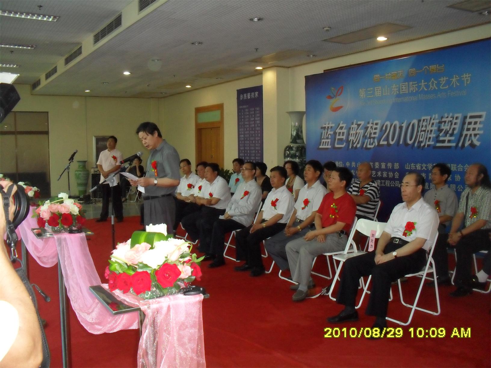 藍(lán)色暢想2010雕塑,2010年8月29日,由中共山東省委宣傳部、山東省文學(xué)藝術(shù)界聯(lián)合會(huì)主辦,山東省雕塑藝術(shù)家協(xié)會(huì)、青島雕塑家協(xié)會(huì)承辦的第三屆山東國際大眾藝術(shù)節(jié)--藍(lán)色暢想2010雕塑展在山東省圖書館隆重開幕。 "藍(lán)色暢想2010雕塑展"吸引了省內(nèi)外大批中青年雕塑家的參與,展覽共收到101位雕塑藝術(shù)家的126件入圍作品。其中省內(nèi)中青年雕塑藝術(shù)家占絕大多數(shù),圍繞"藍(lán)色"主題,堅(jiān)持創(chuàng)造、創(chuàng)新理念,創(chuàng)作了大批優(yōu)秀的雕塑藝術(shù)作品,語言生動(dòng),內(nèi)容多樣,借助不同材質(zhì)和多元化的藝術(shù)風(fēng)格,對(duì)藍(lán)色精神進(jìn)行了深入的闡釋。李友生的《海風(fēng)倩影》、王未的《藍(lán)色暢想》、譚信國的《蘋果系列》等作品,均對(duì)雕塑藝術(shù)內(nèi)涵進(jìn)行了深入的探索。