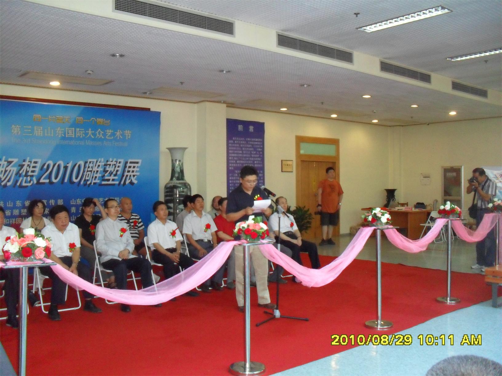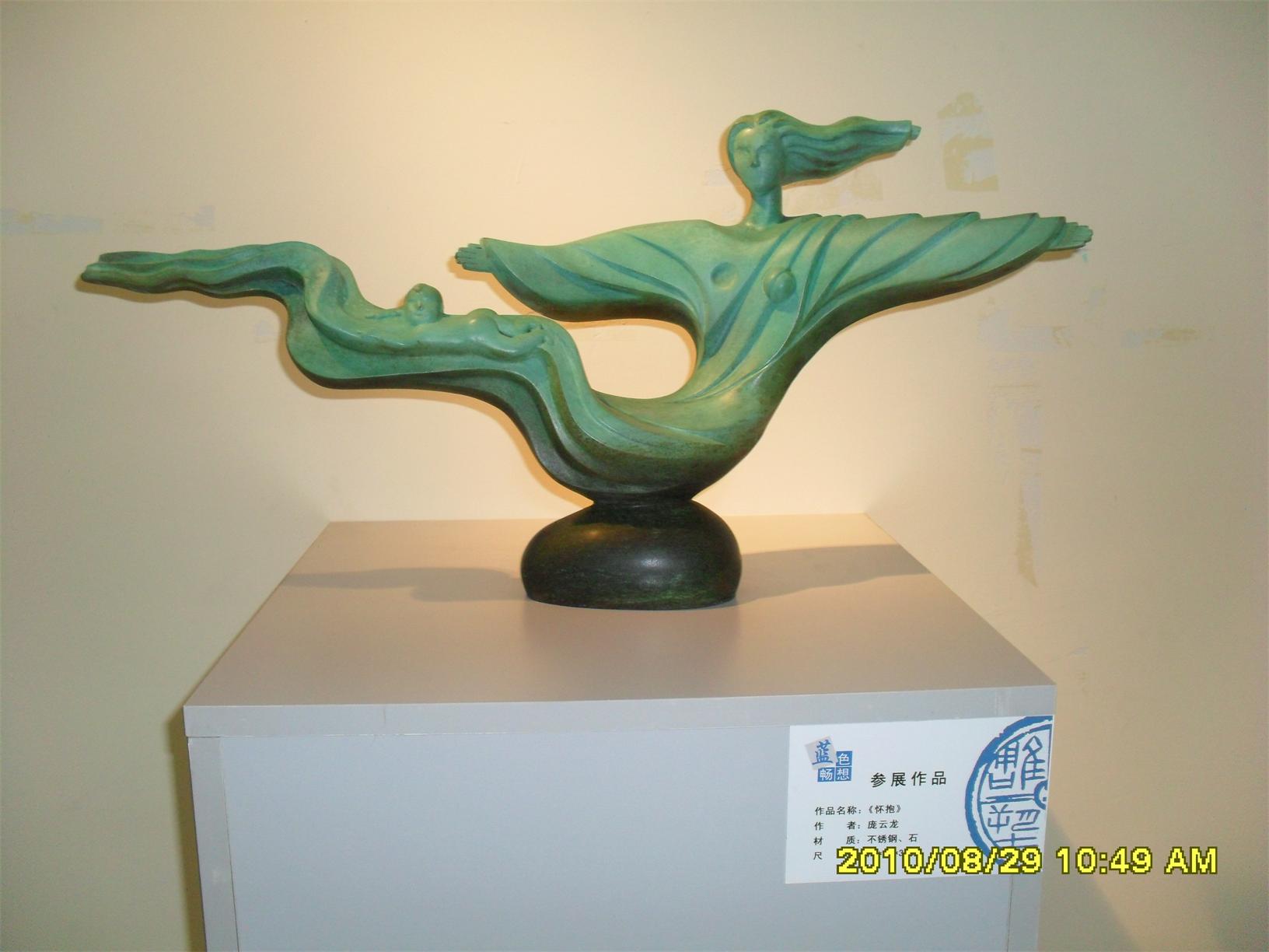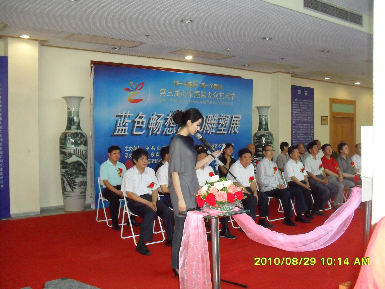 藍(lán)色暢想2010雕塑,2010年8月29日,由中共山東省委宣傳部、山東省文學(xué)藝術(shù)界聯(lián)合會(huì)主辦,山東省雕塑藝術(shù)家協(xié)會(huì)、青島雕塑家協(xié)會(huì)承辦的第三屆山東國(guó)際大眾藝術(shù)節(jié)--藍(lán)色暢想2010雕塑展在山東省圖書館隆重開幕。 "藍(lán)色暢想2010雕塑展"吸引了省內(nèi)外大批中青年雕塑家的參與,展覽共收到101位雕塑藝術(shù)家的126件入圍作品。其中省內(nèi)中青年雕塑藝術(shù)家占絕大多數(shù),圍繞"藍(lán)色"主題,堅(jiān)持創(chuàng)造、創(chuàng)新理念,創(chuàng)作了大批優(yōu)秀的雕塑藝術(shù)作品,語(yǔ)言生動(dòng),內(nèi)容多樣,借助不同材質(zhì)和多元化的藝術(shù)風(fēng)格,對(duì)藍(lán)色精神進(jìn)行了深入的闡釋。李友生的《海風(fēng)倩影》、王未的《藍(lán)色暢想》、譚信國(guó)的《蘋果系列》等作品,均對(duì)雕塑藝術(shù)內(nèi)涵進(jìn)行了深入的探索。
